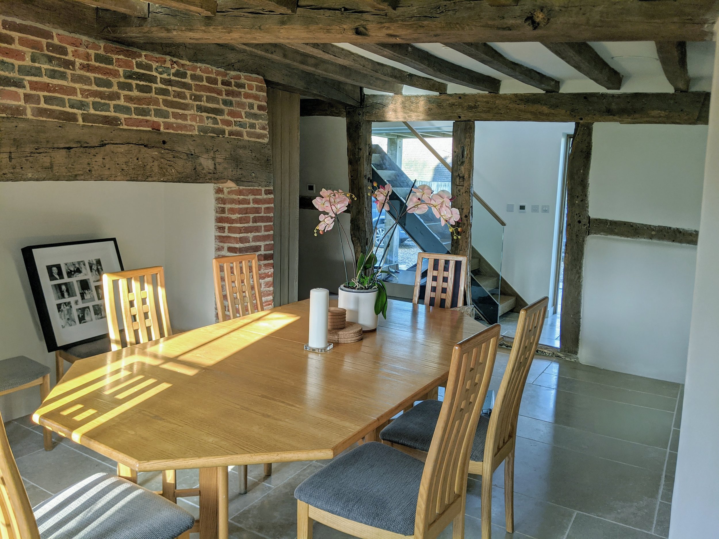 Our proposals involved re-planning the interior to rationalise the primary circulation route, inserting a new staircase and galleried landing into a new double height entrance hall. The 1st floor rooms in the cottage were reinstated to their original size and vaulted ceilings introduced, exposing the early oak timber framing to the roof.